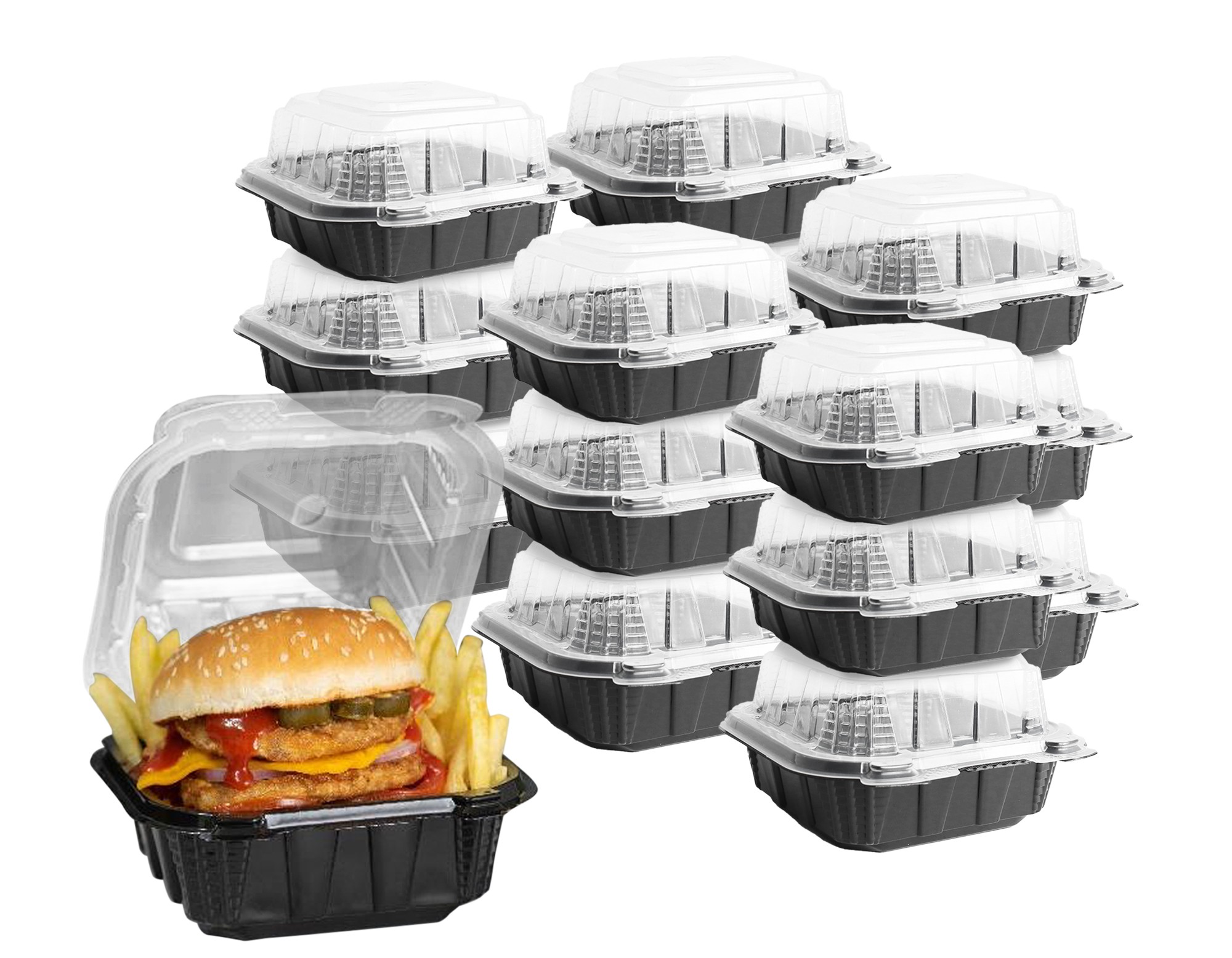 Microwavable 1-Compartment Black | Clear Plastic Hinged Container - 200|cs